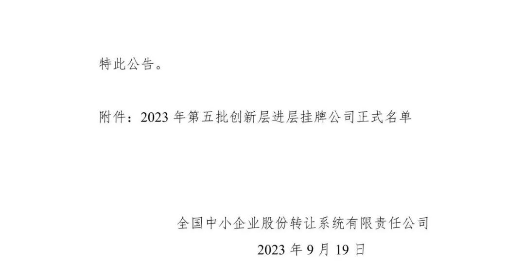 2023-10-10 09:54:21英国beat365官方网站入口股份经全国股转公司审核批准,自2023年9月21日起,正式调入新三板创新层。