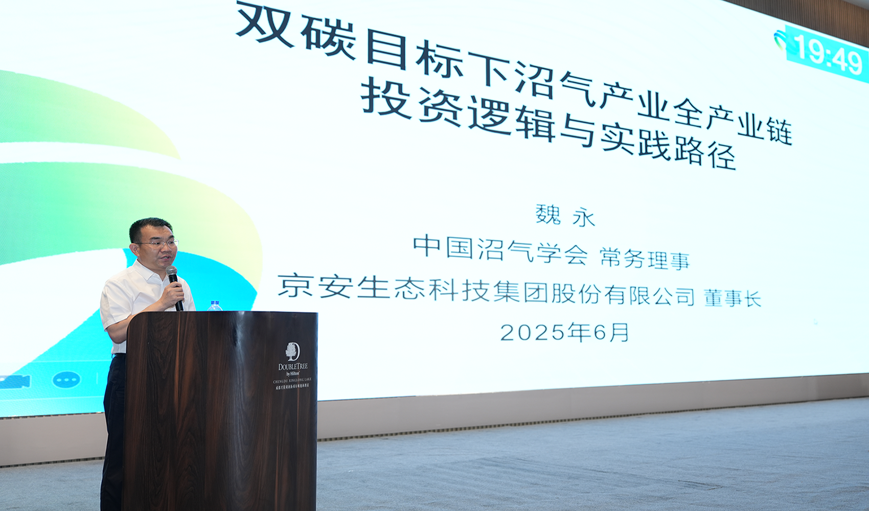 公司董事长魏永带队参加本次论坛,并作了题为“双碳目标下沼气产业全产业链投资逻辑与实践路径”的主题报告,介绍了沼气项目具有的显著的战略价值和广阔的市场前景,是“双碳”背景下极具吸引力的投资方向之一。其核心价值在于将环境治理压力转化为资源循环利用和清洁能源生产的动力。建议行业同人戮力同心,加强对外合作交流,促进生物天然气绿色生态价值的标准核准和国际互联互通,为国家提出的双碳目标奋斗。